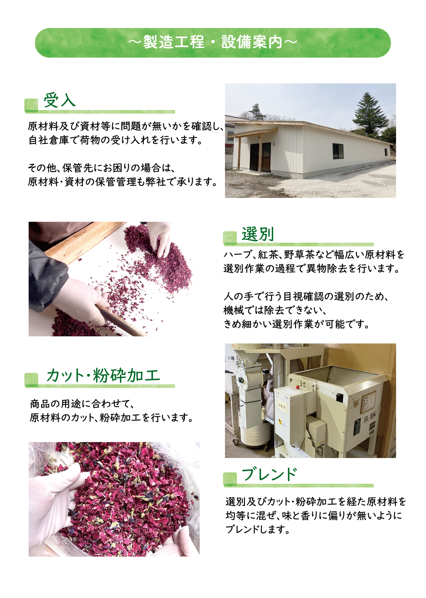 ハーブティー、紅茶、野草茶など、幅広い原料を取り扱っております。詳しくは下記のリンクよりご覧ください。
